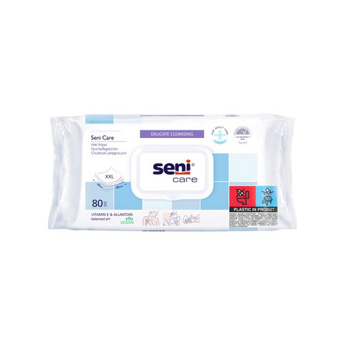 Chusteczki w dużym rozmiarze (30 x 20 cm), odpowiednim do wygodnego oczyszczania większych partii ciała osoby dorosłej. Szczególnie polecane do oczyszczania okolic intymnych podczas zmiany wyrobu chłonnego u osób z nietrzymaniem moczu, jak i do odświeżania całego ciała, kiedy utrudnione jest mycie z wodą, np. w podróży. Dzięki zawartości alantoiny oraz wit. E łagodzą podrażnienia i wspomagają regenerację skóry.